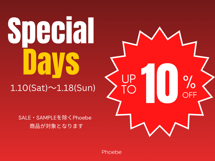 1.10(Sat)~1.18(Sun)までの期間中、Phoebe+POP UP STORE海老名マルイにてSpecial Days開催決定!!