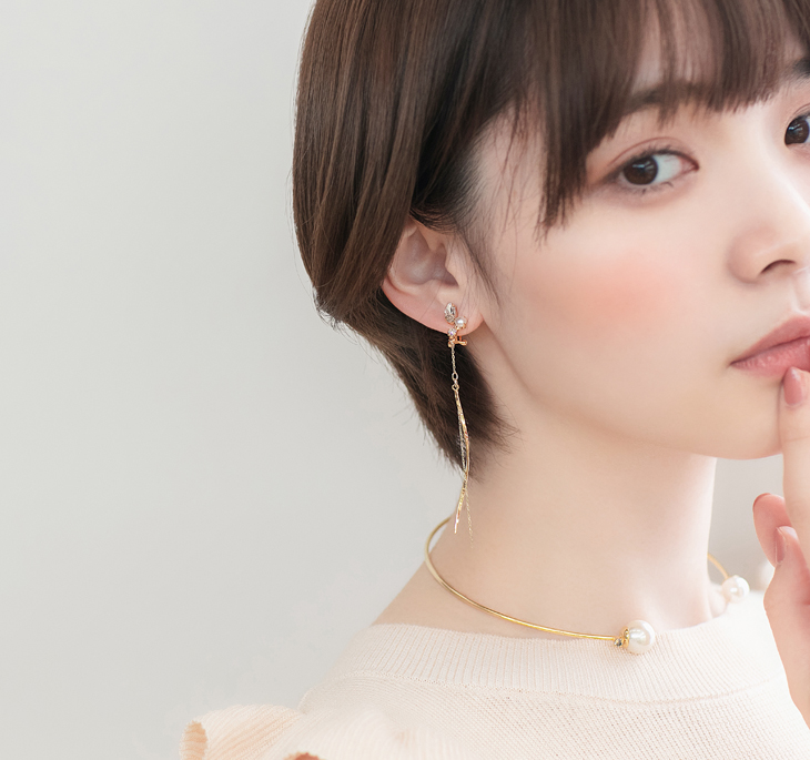 2019.04.11 TODAY’S COORDINATE 今回はエアリーシリーズからはじめてマルチway仕様のデザインやロングシルエットデザインが登場! バネに特殊改良を行ない、ホールド感が有りながらも痛くないイヤリングが実現しました。 イヤリングは、長時間つけていると痛い、ピアスのようにすっきり見えないなどの悩みもつきもの。 バネを軽量化したことで、ソフトタッチでストレスフリーな着け心地とピアス見えするデザインが魅力♡ 軽くて、痛くならず、すっきり見えて、可愛くて、色んな雰囲気が楽しめちゃう♪ 欲張りなくらい、素敵な要素をたくさん詰め込んだレディライクなラインナップです。 まるでピアス?!ロングシルエットがすっきりしたルックスを完成 パールビジューから揺れる、ツイストラインチェーンのコンビがスリムなシルエットを作るエアリーイヤリング。 従来のイヤリングではせっかくの華奢な縦ラインもイヤリングのバネが邪魔をしてなんだかすっきりと見えませんでした。 でも、Phoebeのエアリーシリーズならバネがとっても細いから繊細なラインを美しく魅せてくれます♪ 春の陽射しを受けてそよ風にキラキラと揺れる重なるラインが優雅で上品な印象を放ち、女性らしい雰囲気に。 ロングパールビジューエアリーイヤリング ¥3,500+tax 2wayスティアパールチョーカーネックレス ¥3,000+tax 細かなディテールにこだわったミニマルな煌きがフェミニンな印象に 多彩なカラーや多様な形のビジューを1つ1つ異なる爪でセッティング。 細部までこだわりを詰め込むことで、よりビジューの輝きを生かすデザインにしました。 さりげなくINしたニュアンシーなカラーは輝きとコーディネートのアクセントに♡ 小ぶりなサイズ感ながら不規則に配置したビジューは光を取りこぼすことなく光彩を放って、お顔周りを華やかに演出してくれます。 スティアカラーエアリーイヤリング グレー ¥3,000+tax 華やかなルックスの、フープをコネクトしたエアリーイヤリング。 存在感のあるゴールドラインのロングシルエットも抜け感のあるデザインで爽やかな印象を作り上げます。 一粒配されたビジューはラグジュアリーな雰囲気を引き立たせ、女性らしいルックスに。 ボリューミーなフープは取り外し可能!大きめフープを上にすれば小さなフープが細かく揺れてスタイリッシュに、 小さめフープを上にすれば振り子のようにゆるやかに揺れ動きトレンドライクに、フープを取り外せばすっきりとして上品に仕上がります。 装いに合わせてアレンジを楽しんで、自分だけのルックスを手に入れて♪ 今季のエアリーイヤリングはPhoebeの特殊加工されたバネだからこそできるデザインがいっぱい♡ ミニマルなデザインはバネが目立ちすぎてしまうし、華奢なシルエットもバネが邪魔をしてイマイチ華奢になりきらない・・・。 そんな悩みを全部解決した新作アイテムはイヤリングユーザーもピアスユーザーにも 1つは持っていてほしいマストハブアイテムに仕上がっています。 2wayスウィングフープエアリーイヤリング ¥3,500+tax