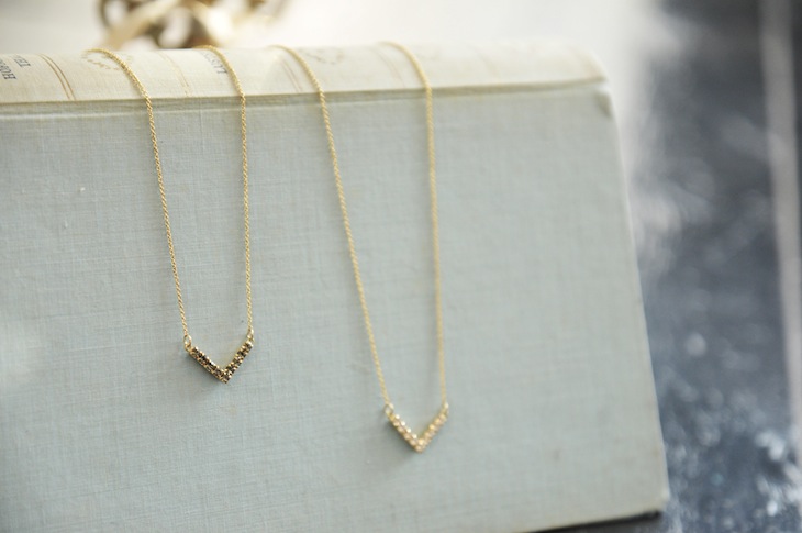 角を意味するAngleにビジューを配置したフォルムのロングネックレス。