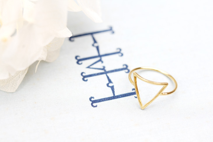 ART TRIANGLE RING 現代アート風のモダンで華奢な金線リング。 大きなモチーフが指を細く魅せる効果もあり肌に馴染むゴールドが使い易い。 海外でもトレンドアイテムとしてファッショニスタの手元を飾るリングです。 BUY