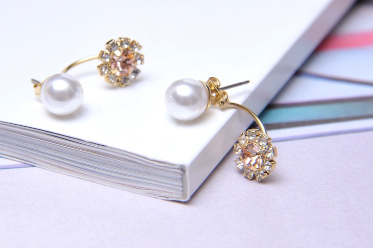 BRILLIANT BACK CATCH PIERCE トレンドのキャッチにデザインを入れたピアス。 小ぶりながらも確かな存在感を放つデザインが特徴です。 敷き詰めたビジューが華やかなアクセントを添えてくれます。4色展開。 BUY