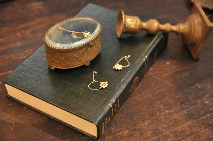 Coquelicot(仏:コクリコ)の花モチーフのビジューパーツを、チェーンと合わせたジュエリーライクなリング。エンドパーツに光るプチビジューがさりげなく可愛いムードを後押しします。サイズ調整も出来て重ね付けしていただくのもオススメです。