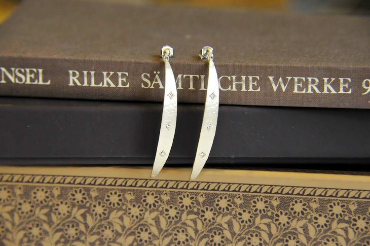 三日月をイメージしてデザインした、シャープなシルエットのピアス。