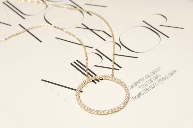 ネックレスは大振りで主役級の存在感で、セットでピアスは普段使いしやすいプチサイズでの展開です。
