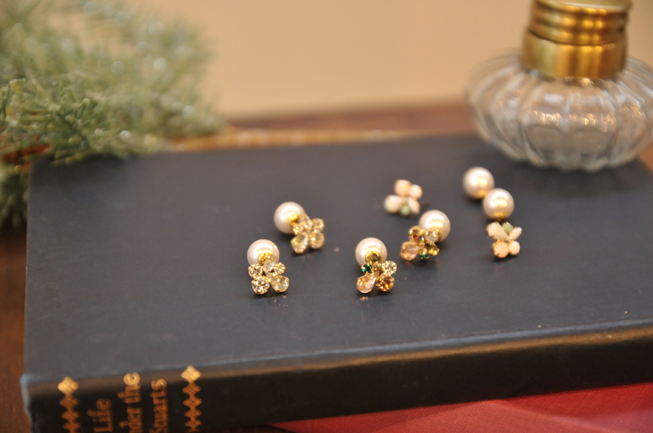 宝石箱(仏:ecrin)のようにキラキラと輝くビジューを集めたピアス。