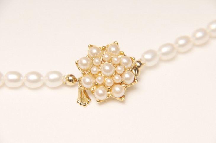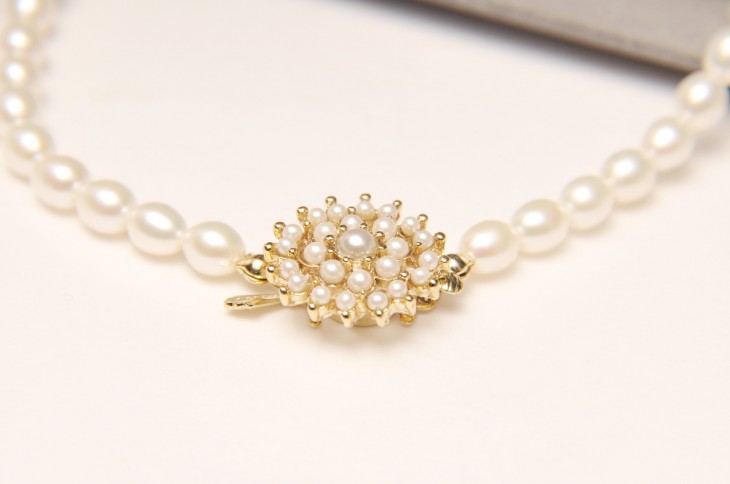 オリジナルのクラスプと同デザインのピアスとセットで身に着けると更にクオリティUP。全周贅沢に淡水パールを使用しています。