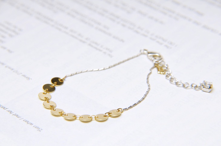 チェーンのキラキラ感を楽しめるメタルブレスレット。
