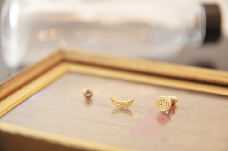 GOOD LUCK MOON PIERCE 神秘的な月の満ち欠けをモチーフにしたピアス。左右アシンメトリーなデザインで、満月を意味するラウンド型の裏にはうさぎが隠れています。 ジュエリーのような繊細な仕上がりで。 いいことが起こりそうなそんな気持ちにさせてくれるアイテムでギフトにも喜ばれそう。 BUY