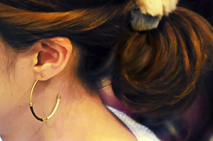 2色のツイードを組み合わせたAutumn&Winterテイストたっぷりのフープピアス。