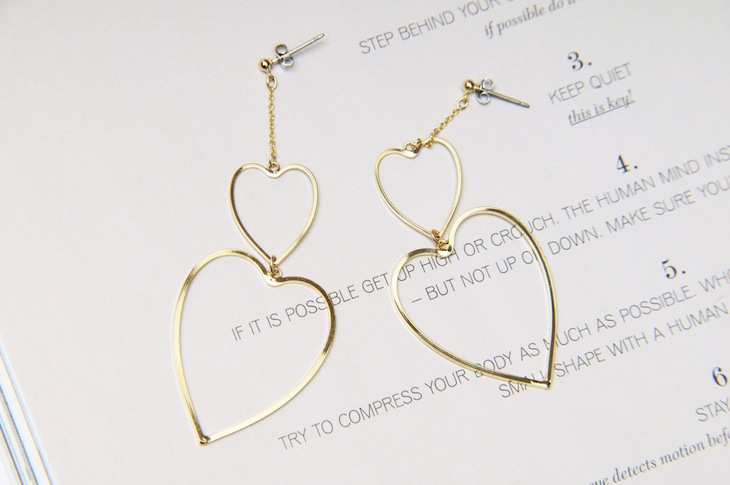 HEART HOOP PIERCE ハンドメイドで角線を曲げて象ったハートのフープピアス。 メタルの面が光を反射して耳元でキラキラ輝きます。 存在感があり、メタリックな装いがトレンドスタイルに合わせやすいデザイン。 進化系スウェットやニット帽とのコーディネートもおススメ。 BUY