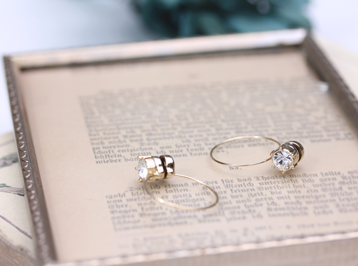 HOOP MAGNET PIERCE まるでピアスを付けているような印象のフープタイプのマグネットピアス。 繊細な金線の美しさと一粒のビジューのシンプルさは身に付ける人を華やかに輝かせるデザイン。 BUY