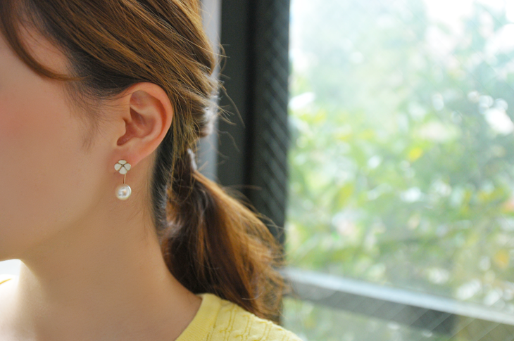 アジサイのお花をモチーフにし、パールキャッチと合わせたピアス。