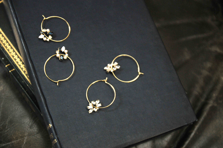 フープピアスと合わせて輝くビジューモチーフがユラユラと揺れて視線を誘う、ラグジュアリーなデザインピアスです。