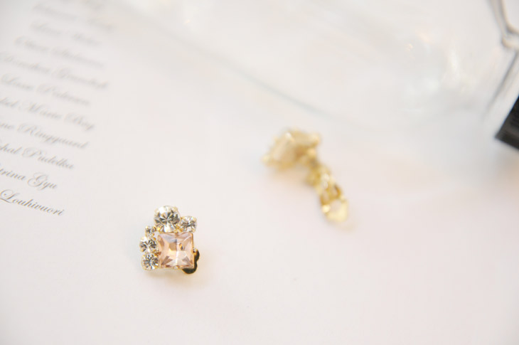 ビジューを寄せ集めたトレンドを押さえたデザインイヤカフ。普段のスタイルからパーティールックまで幅広く活躍するアイテムです。クリアとピンクの2色展開。