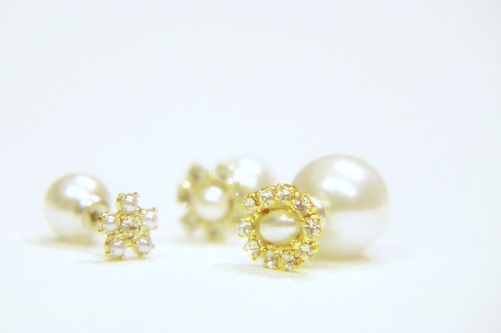 ビジューの片耳ピアスは、トレンドのパールキャッチに合わせてお花をイメージしてデザインしました。