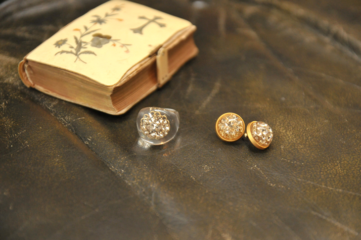 ドーム状のクリアパーツに広がる小さな世界(仏:Le petit monde)を表現したとてもロマンチックなピアス。