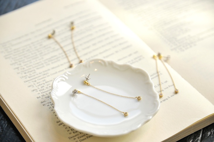 ぷっくりとしたコクーンシルエットの台座に天然石を施したジュエリーライクなピアス。