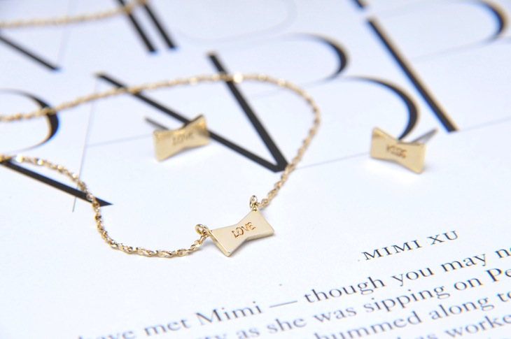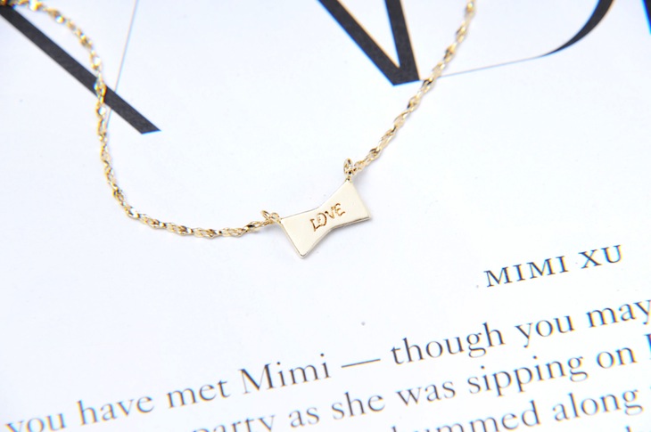 蝶ネクタイ(Bow:ボウ)をイメージしたリボンプレートペンダント。