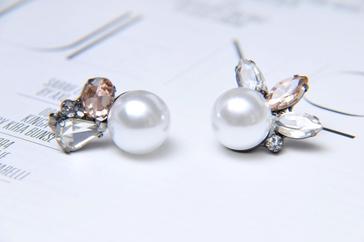 左右でビジューのパターンが違っているので、着け方次第で様々な表情が楽しめます。