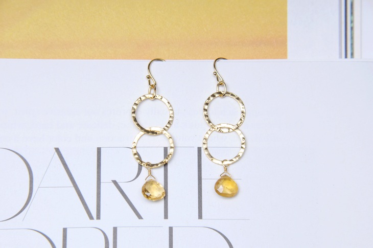 Narcissus(ナルキッソス英:水仙)カラーのシトリンが主役のモダンなデザインのピアス。