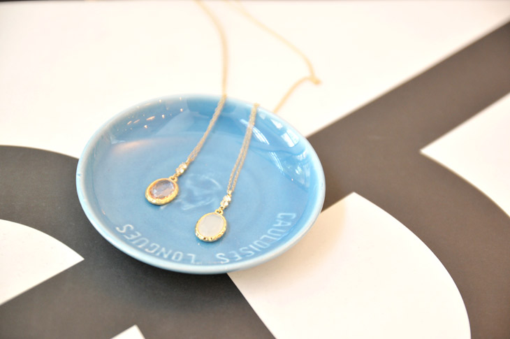 PLANET GLASS PENDANT 輝く惑星をイメージした華やかで女性らしい表情を魅せてくれるアイテムです。透明感のある淡いピンクとホワイトの2色展開でビジューとの組み合わせは大人カジュアルシーンにもぴったり。セットでピアスも展開。