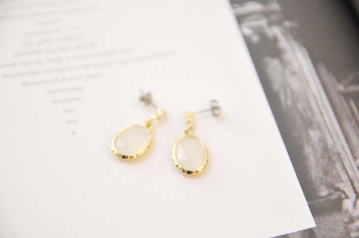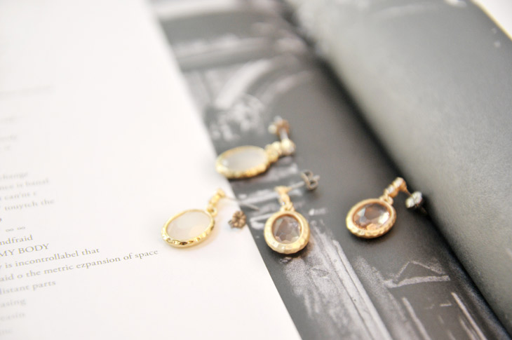 PLANET GLASS PIERCE 輝く惑星をイメージした華やかで女性らしい表情を魅せてくれるアイテムです。透明感のある淡いピンクとホワイトの2色展開でビジューとの組み合わせは耳元をシックで上品な印象に飾ってくれます。 セットでネックレスも展開。
