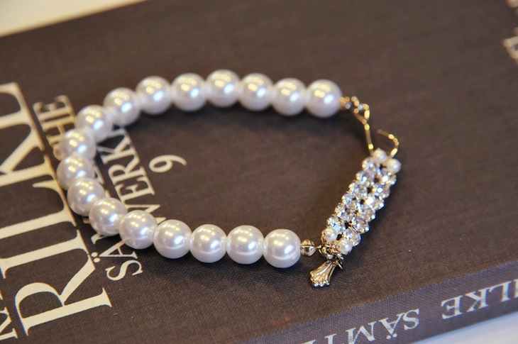 存在感のあるビジューオリジナルクラスプがポイントのパールブレスレット。