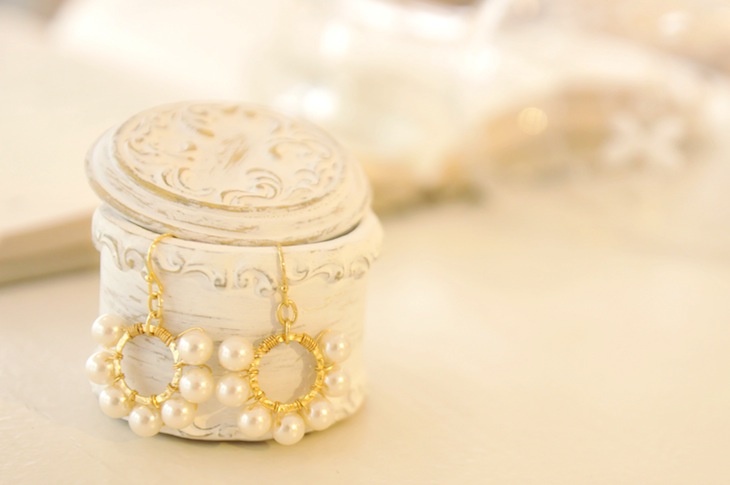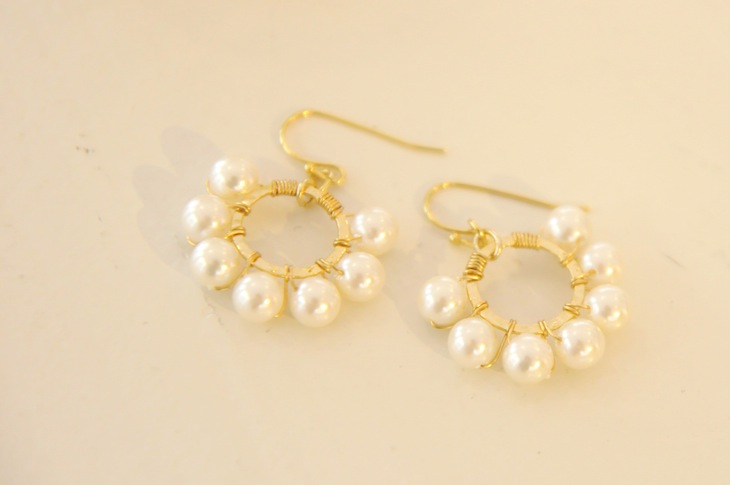 routine(日常的に)で使いまわしたい都会的な香りのピアスは、ハンドメイド調のサークルパーツに1つ1つパールを編み込んでいくという手の込んだ作りが特徴。