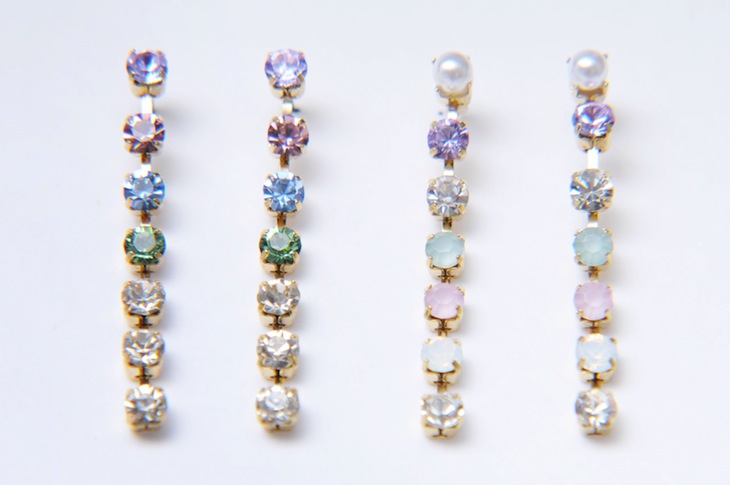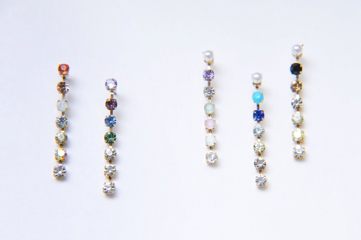 STAINED GRASS PIERCE 西洋のステンドグラスをイメージしたカラーで作り上げたピアス。 流れるような色づかいは絶妙な組み合わせで、5色の展開からお好みの配色をお選び頂けます。 柔らかく揺れるビジューの輝きは太陽光を透かしたステンドグラスの色が教会の床に落ちた様を連想させます。 BUY