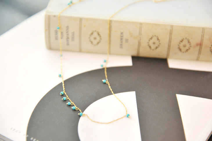 SUMMER MEMORIES NECKLACE 夏の楽しい思い出にはいつもこのネックレスが寄り添っているようにとサマーコーデに合わせやすいデザイン。 贅沢に散りばめたターコイズが縦のラインを強調し上半身をスッキリ見せてくれます。 涼しげなチェーンで仕上げたロングサイズです。