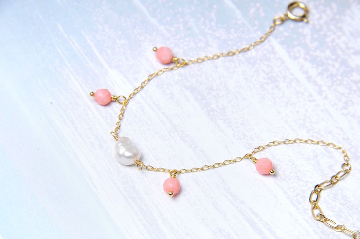 SWEET GARDEN BRACELET 大粒の淡水パールとパステルカラーの天然石のコンビネーションブレスレット。 ナチュラルで優しい雰囲気をプラスしてくれます。 まるでジュエリーのように丁寧に作られているので、仕上がりはとても贅沢。 BUY