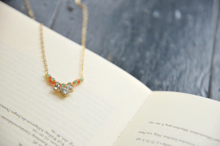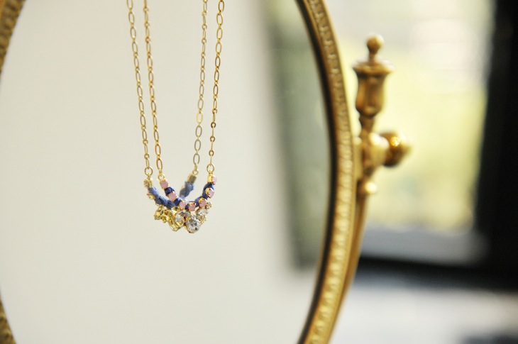 トレンドのカラフルなビジューとコードをネックレスに仕上げました。 小さ目のビジューを使用しているので派手すぎず優しくファッションのポイントとしてトレンドを取り入れられます。フルーツカラーの「citrus」とかわいい「feminine」の2色展開。