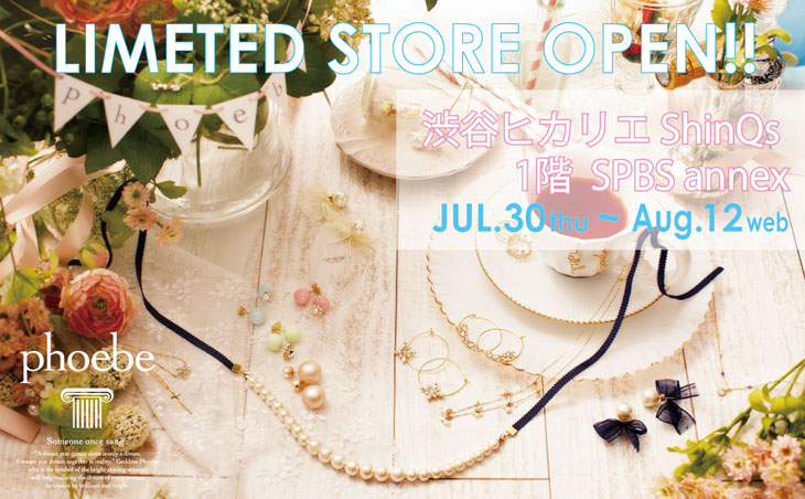 7/30(木)~8/12(水)渋谷ヒカリエ ShinQs1階にphoebe期間限定ショップをオープン致します!!