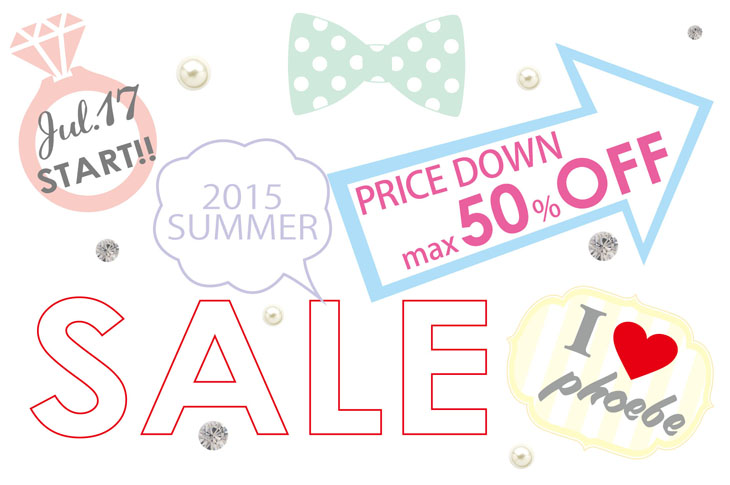 2015 SUMMER SALE 第2弾のご案内 本日より SUMMER SALE 第2弾!!がスタートいたします。 Max 50%OFF!! 夏の主役になれる旬のアクセサリーをお得にGET出来るチャンスです。 お見逃しなく♪ Online storeも本日の12時から同時開催いたします☆ http://goo.gl/COSPMc ▼phoebeオフィシャルブログ http://ameblo.jp/phoebe-official/ ▼phoebe直営店・取扱店 http://phoebe.co.jp/shoplist/ ◆phoebe ルミネエスト新宿店B2F 03-6273-1905 ◆Jewel Addict by jupiter 新潟 025-250-7191 ◆Jewel Addict by jupiter 心斎橋 06-6241-1688 ◆Jewel Addict by jupiter吉祥寺 042-276-1677 ◆Jewel Addict ルクア大阪 06-6151-1238 ◆Jewel Addict ルミネ大宮 048-778-9750 ◆Jewel Addict by jupiter 札幌 011-209-5238