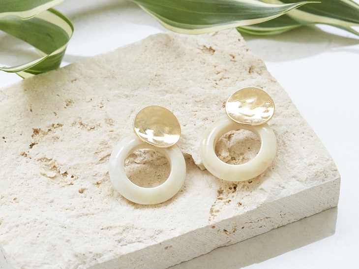 マーブル模様のアクリルフープが旬顔なピアス