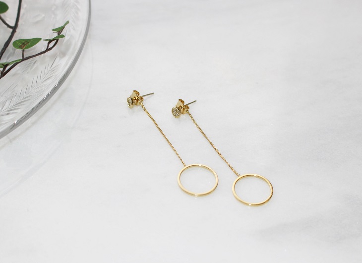 揺れるハートがフェミニンなバックキャッチピアス トップにはシンプルに1石のジルコニアが輝きます。 抜け感のあるハートモチーフと、華奢なチェーンが洗練されたデザインです。 毎日でも着けていたくなるような程良いサイズ感が魅力です。 フェミニンハートバックキャッチピアス ¥2,200+tax 抜け感のあるサークルと、華奢なチェーンが洗練されたデザインです。 アーバンサークルバックキャッチピアス ¥2,200+tax